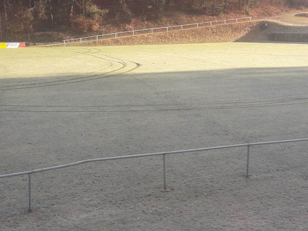 ETZELWANG. Im Zeitraum vom vergangenen Sonntagnachmittag (29.12.2019) bis zum Montagvormittag (30.12.2019) befuhr ein bislang unbekannter Fahrzeugführer den A-Rasenplatz auf dem Sportgelände des SV Etzelwang.